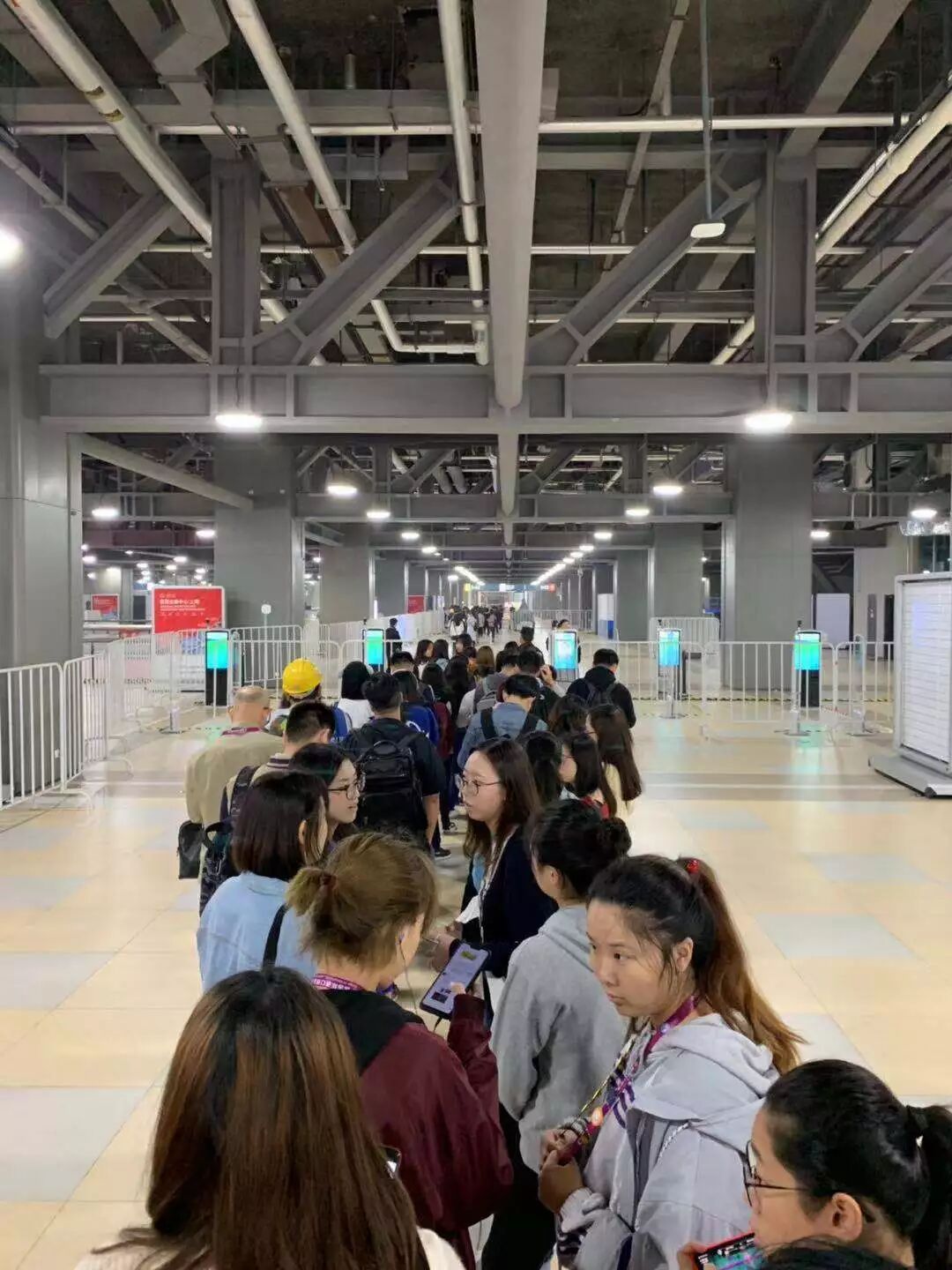 安检口人头攒动,志愿者们正井然有序地排着队。