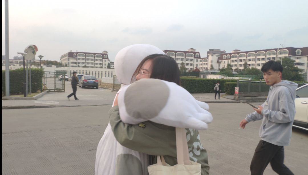 数台相机、DV包围着志愿者们,神态可掬的“大白”给每一位志愿者大大的拥抱。