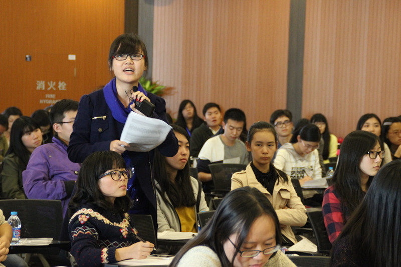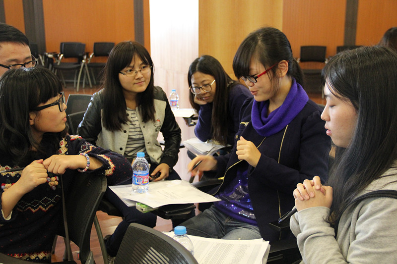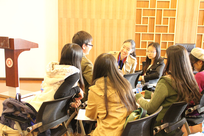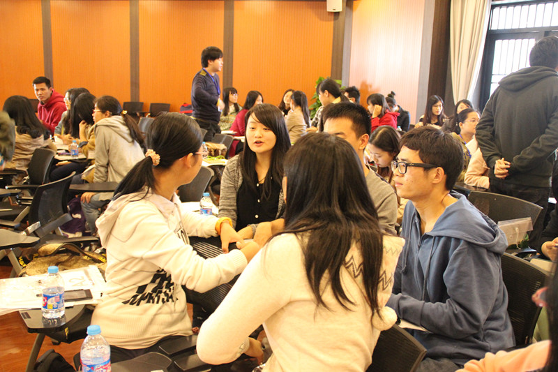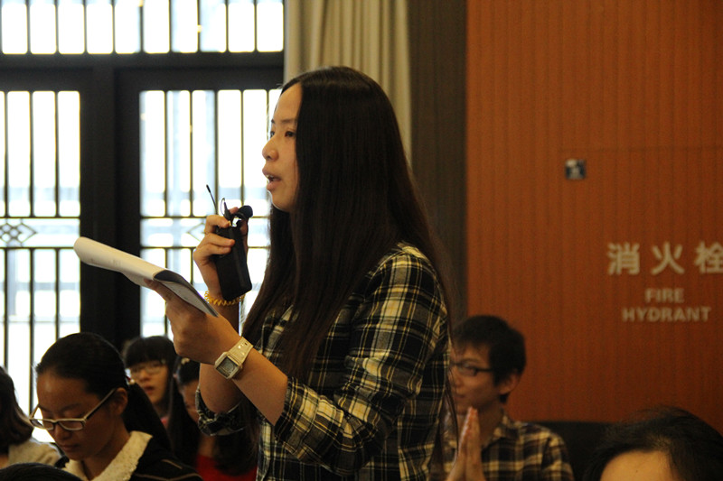 紧接着,在主持人通过一段生动形象的Flash介绍完辩论赛规则后,今天的辩论赛正式拉开帷幕。在展开群雄激辩之前,正反方首先就辩题“社团发展示需要大师兄还是沙师弟”在各自小组内进行了15分钟的讨论。辩协特邀嘉宾走进各个小组,参与到社长们的热烈讨论中,并适时给予战术指导。起初,社长们还有些许紧张,在正反方辩手各自陈词之后,大家也渐渐进入状态,脸上都浮现出跃跃欲试的神情。两方陈词后,比赛进入攻辩环节,正反方辩手展开一番唇枪舌战,你若问得我哑口无言,我也定要辩得你面红耳赤。其余的社长们也不闲着,仔细聆听对方辩友观点的同时,寻找他们的漏洞,及时给自己的队友送上锦囊妙计,“智囊团”当得名副其实!辩论赛如火如荼地进行着,社长们妙语连珠,你来我往之余,相信心中也对各自社团的管理现状有了更深层面的新思考和新规划。