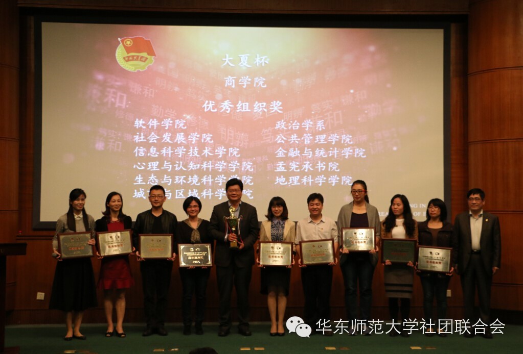 会上同时对华东师范大学第二十二届“大夏杯”课外学术科技作品竞赛优秀组织奖,2013-2014年度华东师范大学优秀共青团员(干部)、先进团支部、五四红旗团委、五四特色团组织,2013-2014年度华东师范大学优秀志愿者、优秀志愿者队、优秀志愿服务项目,2014年度华东师范大学优秀社团干部等多项先进集体和个人进行了表彰。