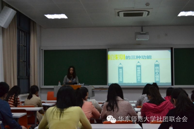 2015年4月29日晚18时,由社团联人力资源部主办的“策划培训为你助力”——中北社团骨干培训第二期在中北三馆149顺利举行。此次活动邀请了谜纪推理协会的前任社长孟繁舒担任主讲人,阳光小动物协会、羽毛球协会等二十多家社团的社长、副社长们共同参与了本次活动。