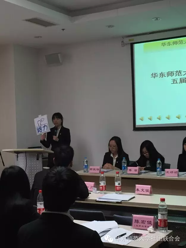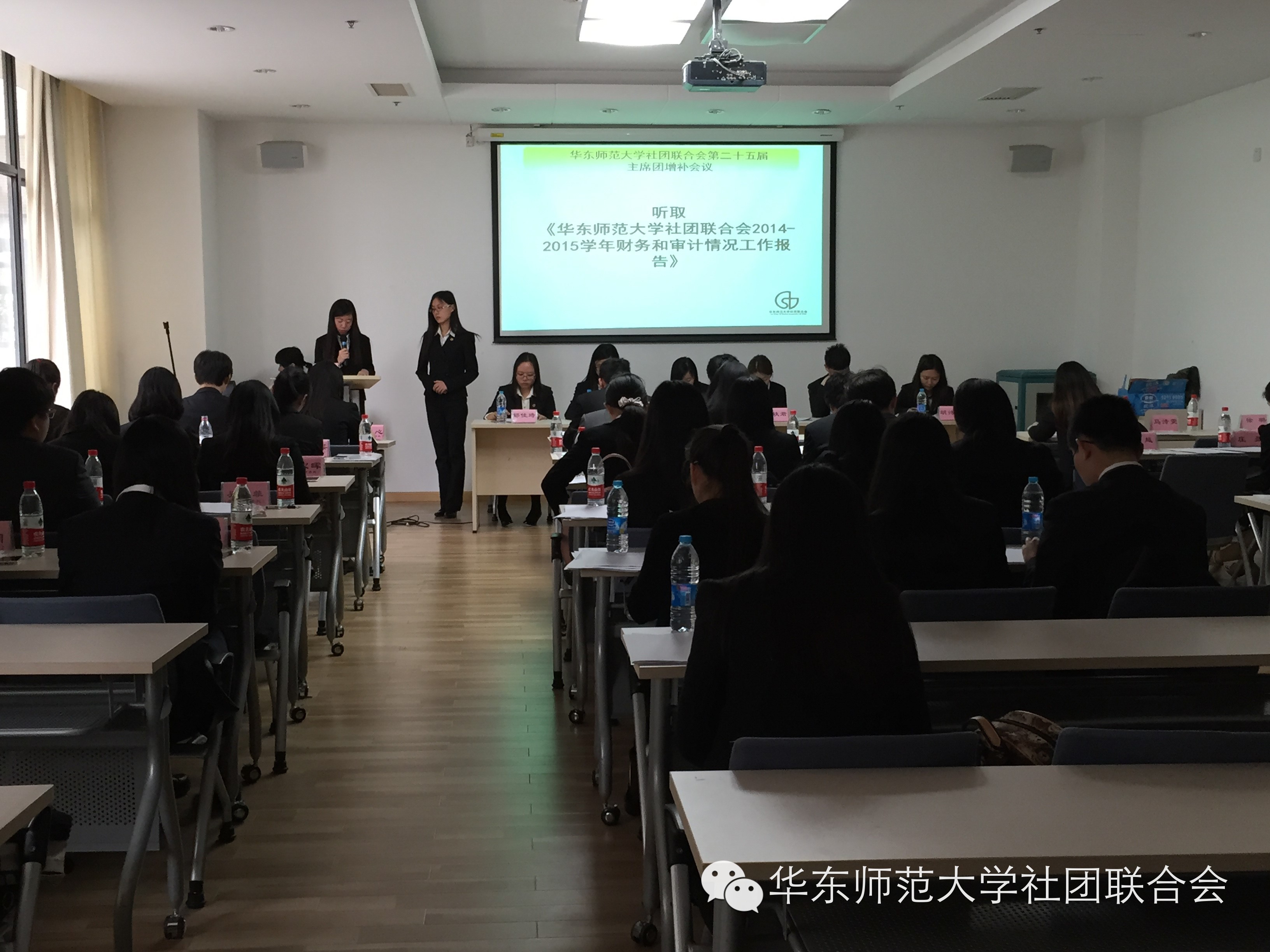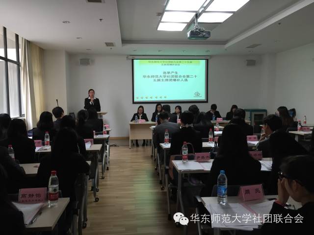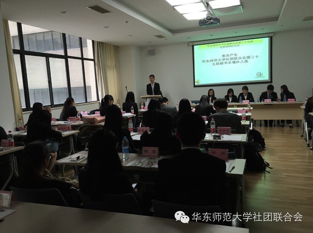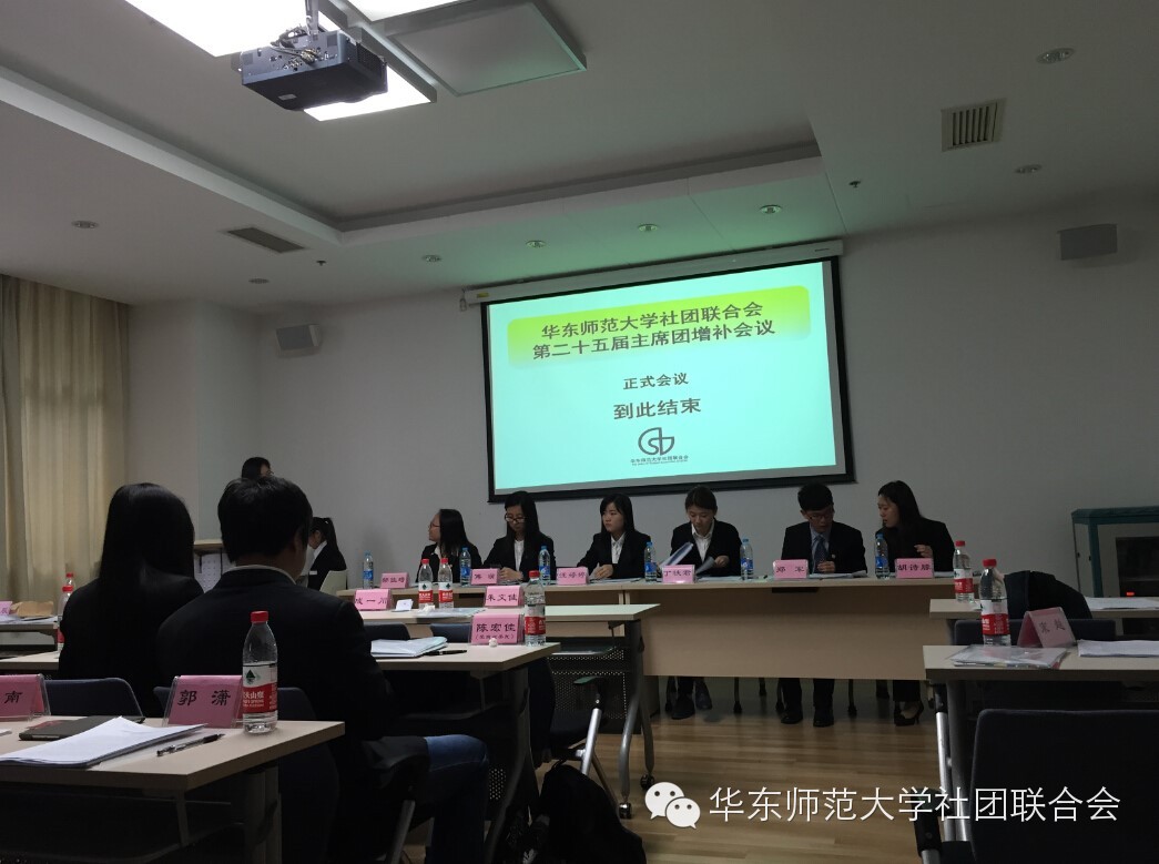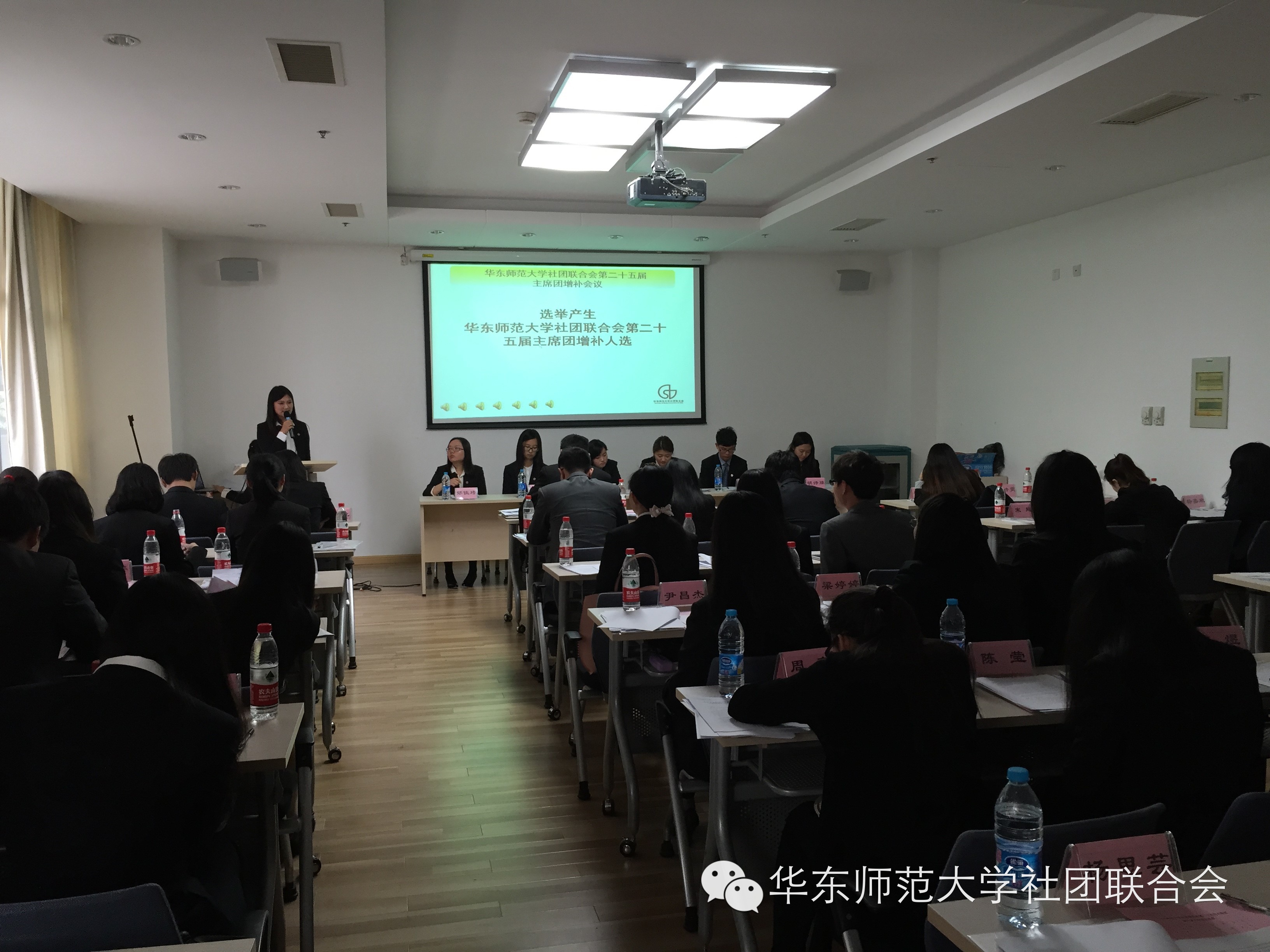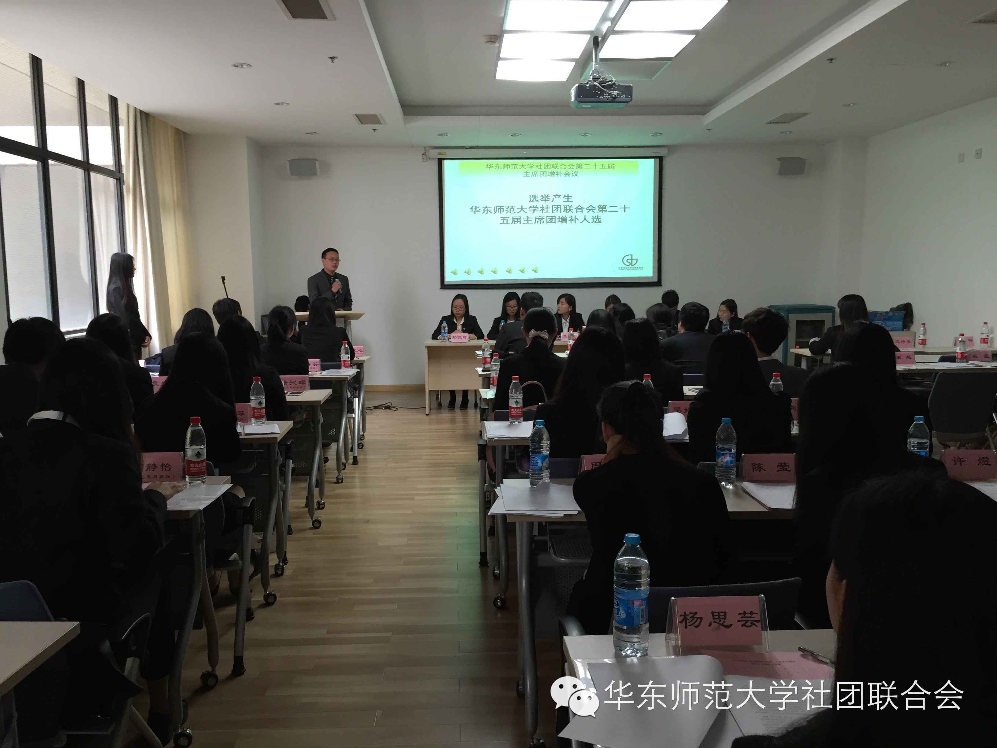 4月15日下午,华东师范大学社团联合会第二十五届主席团增补会议在我校中山北路校区理科大楼正式召开。校团委副书记朱文佳、社团联合会指导老师成一川出席了本次会议;来自相关学生社团及社团联合会的共计47名正式代表参加了本次会议。