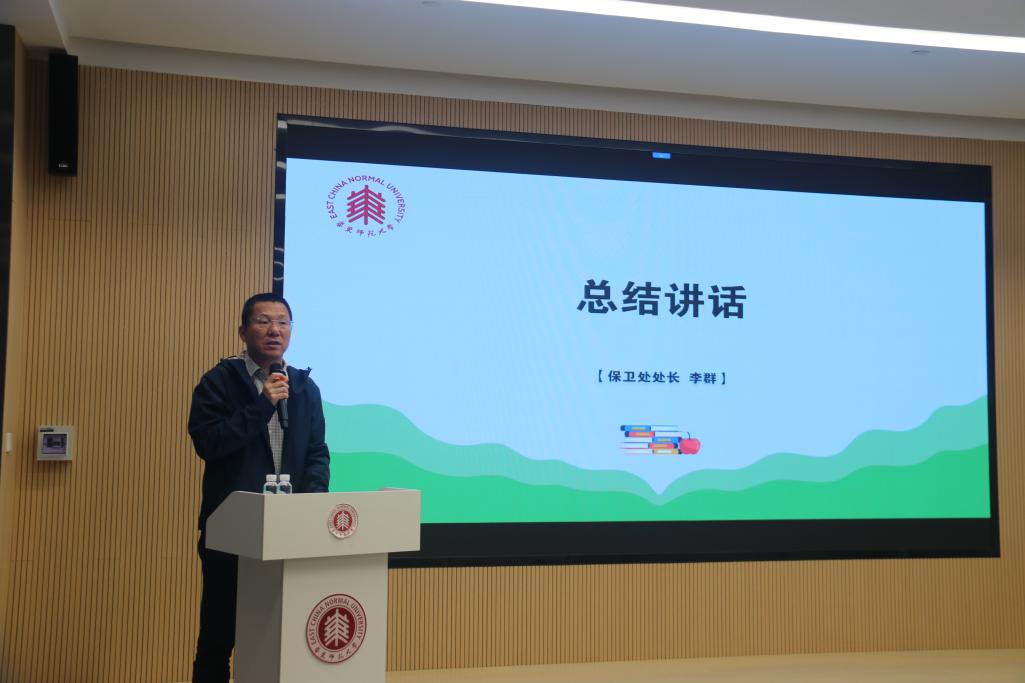 保卫处处长李群在总结讲话中指出,当前校园安全形势呈现新特点、面临新挑战。成立大学生平安志愿者队伍,就是要构建“学校主导、部门协同、学生主体、全员参与”的校园安全共治格局,让同学们从“安全受益者”转变为“安全守护者”,从“被动接受管理"转变为“主动参与治理”,真正实现校园安全共建、共治、共享。他对志愿者们提出三点希望:第一,提高站位,扛起使命,做校园平安的守护者,主动当好安全宣传员、隐患巡查员、信息报送员、应急协助员;第二,勤学善练,提升本领,做专业过硬的行动者,掌握安全基础知识、应急处置技能、文明服务规范,努力成为懂安全、会防范、能服务、靠得住的平安志愿者;第三,严守纪律,展现风采,做文明有序的示范者,服从组织安排,恪守志愿精神,用实际行动维护队伍形象。同时,他强调保卫处及指导老师们要与校团委、学生工作部密切协同,全力做好队伍建设、培训指导、保障支撑,要把大学生积极性调动、志愿者规范化管理、科学化激励机制作为重点课题深入研究,不断完善制度、优化流程、创新方式,让同学们愿意干、干得好、有收获、有成长,推动平安志愿者队伍常态化、规范化、品牌化运行。