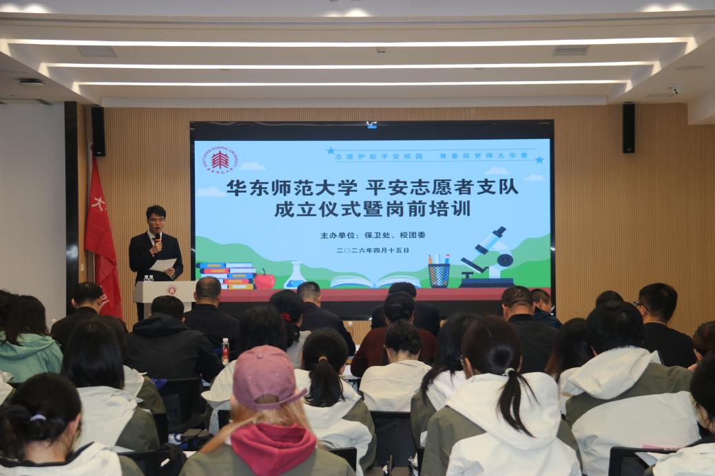 华东师范大学大学生平安志愿者支队成立仪式暨岗前培训在普陀校区双创大楼一楼报告厅举行