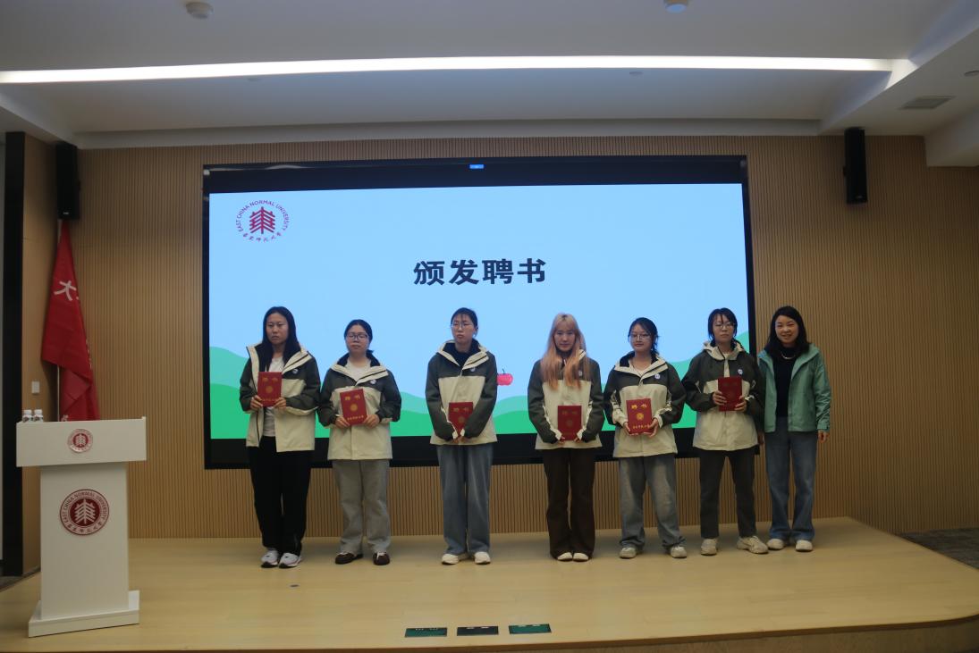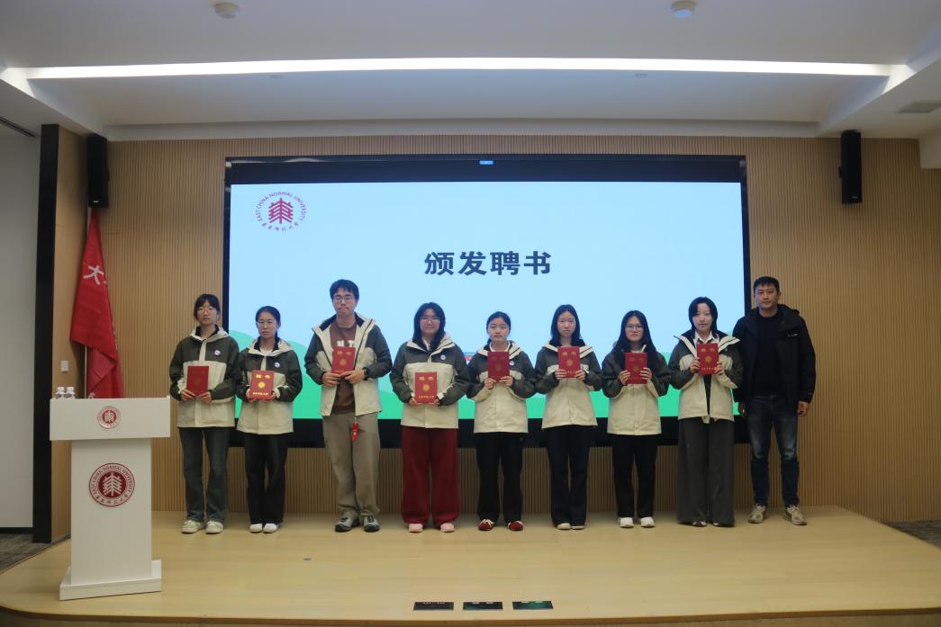 仪式现场,校团委书记薛寅申宣读平安志愿者队伍名单,保卫处处长李群宣读指导老师聘任名单,与会领导、嘉宾依次为志愿者与指导老师颁发聘书,完成了队伍核心架构的搭建。